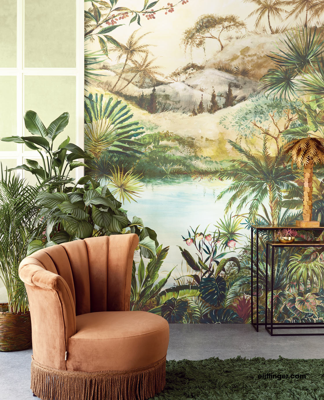 Die Eijffinger Vivid Fototapte 384602 Tropical Large bringt eine ruhige Stimmung in Ihr Zuhause, zugleich gibt es dem Raum eine künstlerische Note. Der Digitaldruck ermöglicht die authentische Darstellung des tropischen Gemäldes. Selbst Pinselstriche sind noch erkennbar. Dank des hochwertigen Vliesträgers, ist die Anbringung der Fototapete 384602 besonders einfach. Außerdem ist sie pflegeleicht, lichtbeständig und wasserbeständig. Holen Sie sich jetzt mit der Fototapete Tropical Large 384602 Ihr eigenes Stückchen Natur und Idylle zu sich nach Hause!