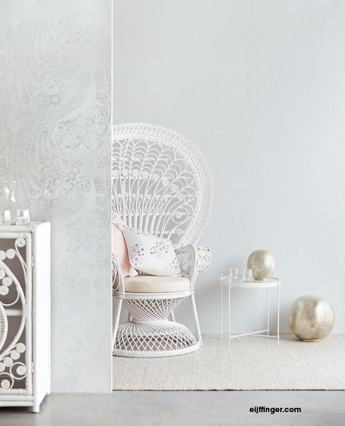 Die edle Reflect Tapete 378001 mit Pfau und Blumen Muster von Eijffinger ist eine sehr hochwertige Tapete und ein Blickfang in jedem Zuhause.