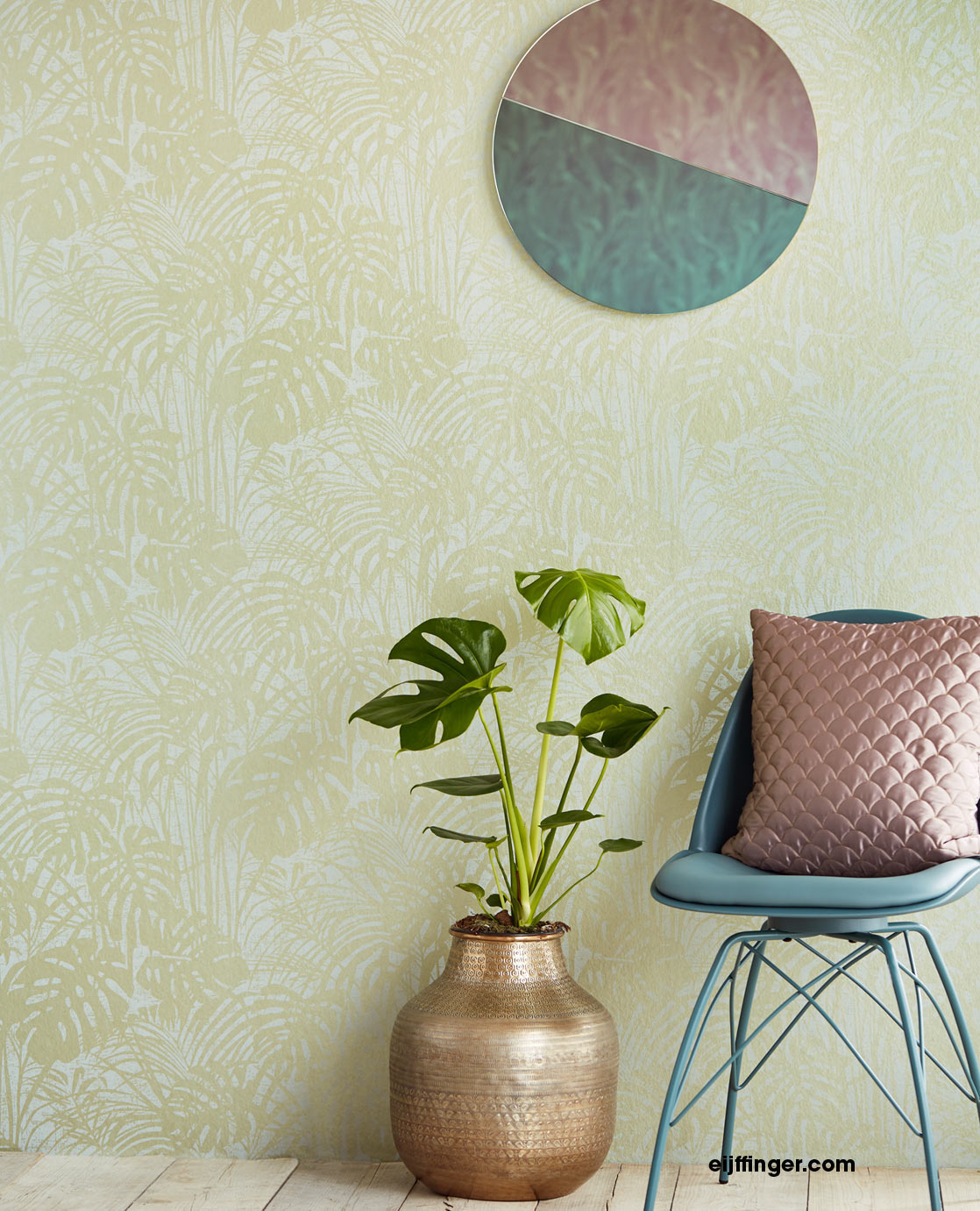 Die edle Reflect Tapete 378011 mit Farnwiesen Optik von Eijffinger bringt Ihrem Zuhause einen eleganten Charme.
