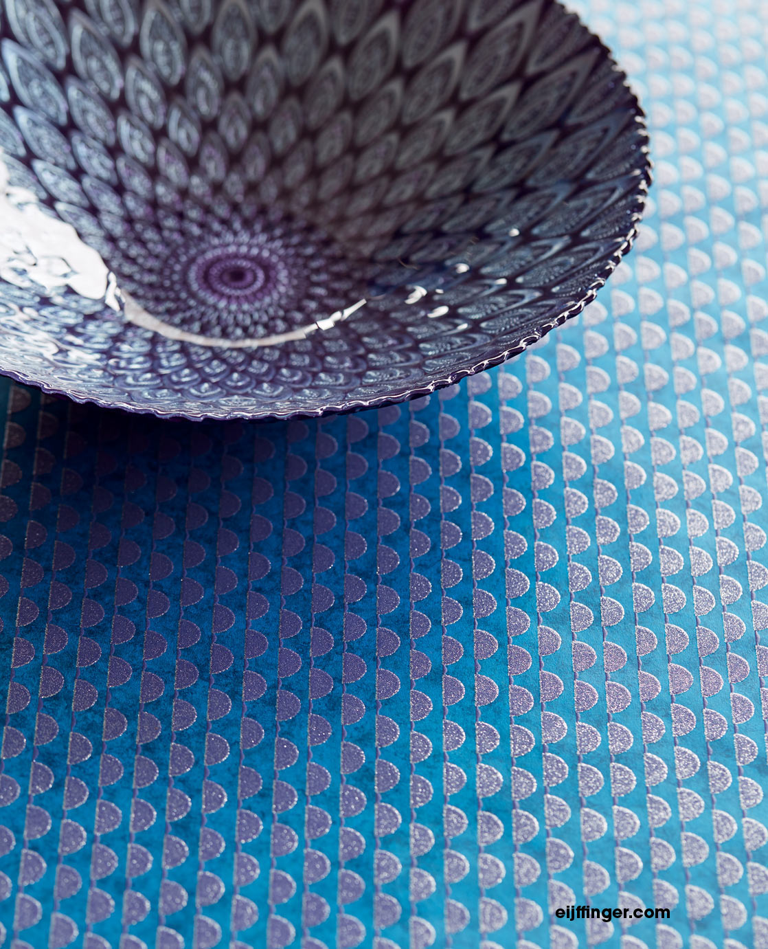 Die elegante Reflect Tapete 378033 mit Wellen Optik von Eijffinger erinnert an die Reflektionen auf den Schuppen eines Fisches im Wasser.