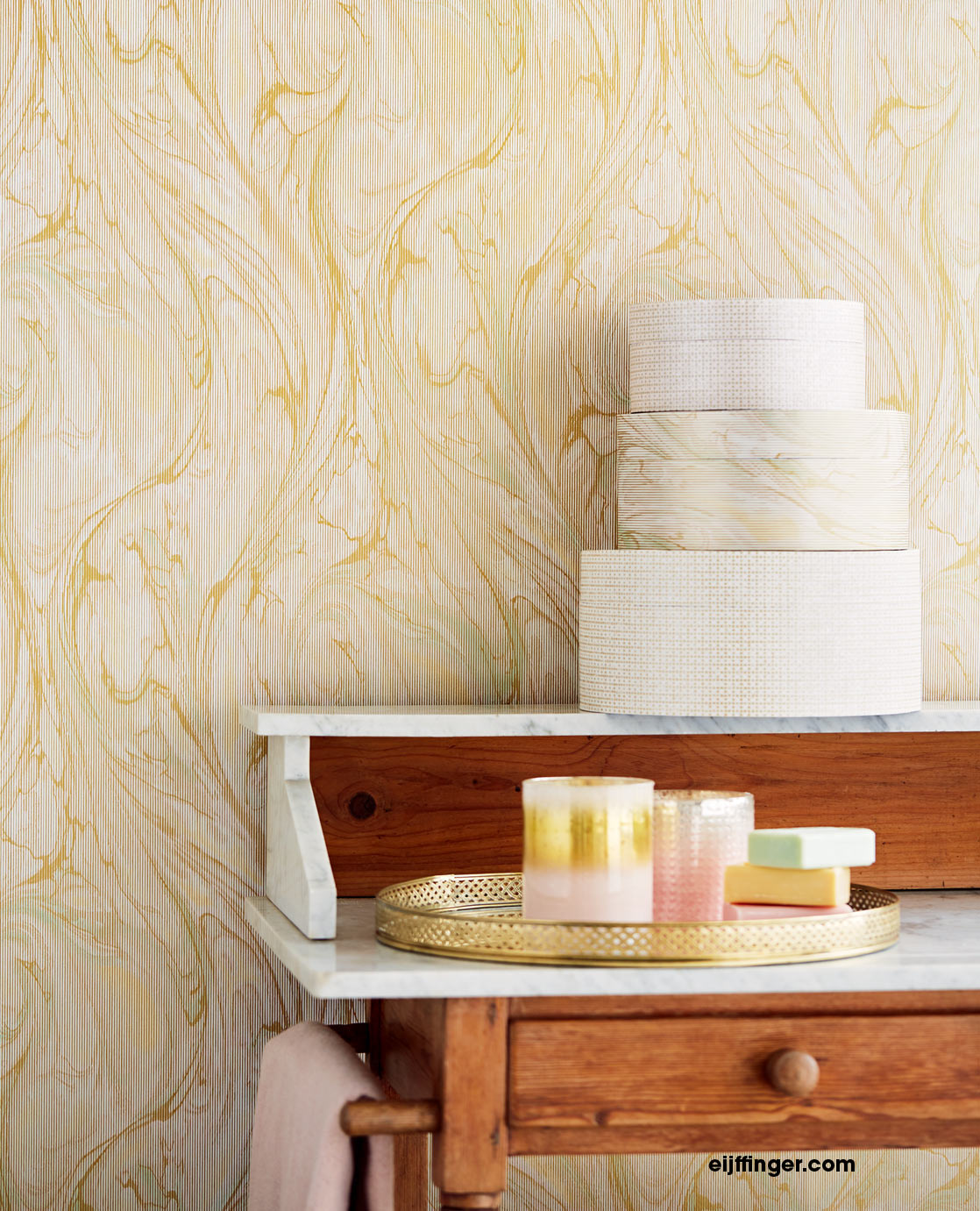 Die edle Reflect Tapete 378043 mit Marmor Optik von Eijffinger gibt Streifen Optik eine neue Interpretation.
