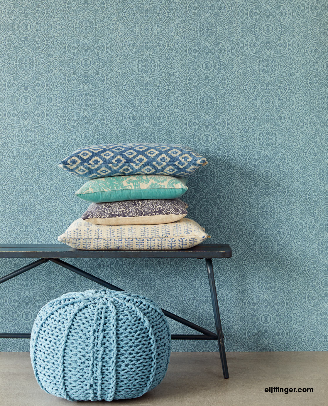 Das traditionelle indische Muster der Vliestapete 375163 ist unauffällig genug um nicht den Raum zu dominieren, kann aber trotzdem seine fremdländische Wirkung entfalten. Die Farben sind klar und scharf voneinander abgegrenzt, was sie geradezu leuchten lässt und den Raum aufhellt. Vlies Tapeten sind ein Kinderspiel in der Anbringung und Handhabung und dank ihrer Formfestigkeit sogar für Bad und Küche geeignet. Lassen Sie sich beeindrucken von der Kraft indischer Designs mit der Tapete 375163 von Eijffinger!