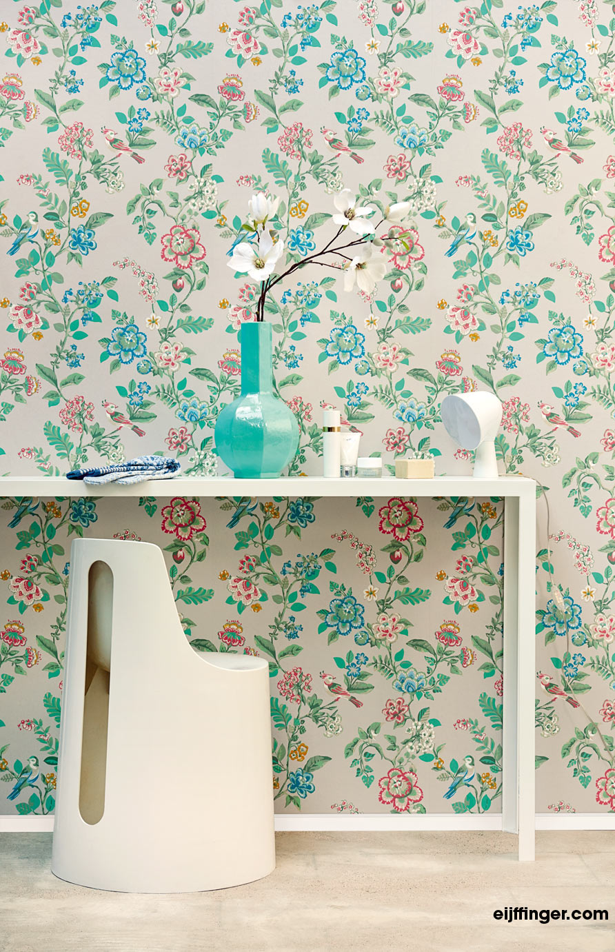 Die fröhliche Pip Studio 4 Tapete 375060 Botanical Print mit Blätter und Blumen Muster von Eijffinger bringt auf verspiele Weise Natürlichkeit in Ihr Zuhause.