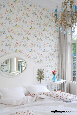 Die verspielte Pip Studio Tapete 375080 Early Bird mit Zweige und Vögel Muster von Eijffinger gibt Ihrem Zuhause eine fröhliche und natürliche Stimmung.