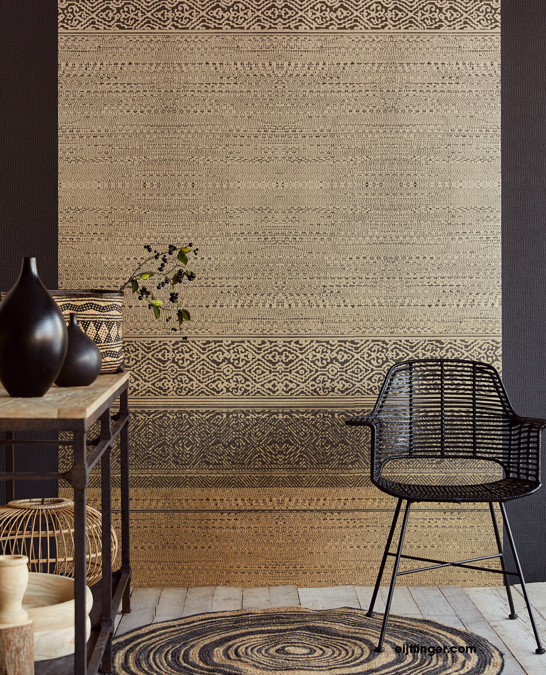 Das digital gedruckte Wandbild Tapestry Burnt Umber 376091 aus der Siroc Kollektion von Eijffinger bringt eine exotische Stimmung zu Ihnen nach Hause.