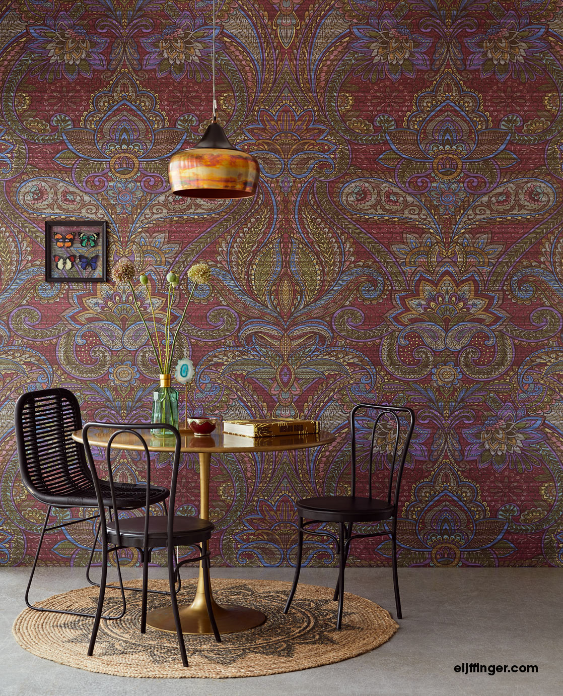 Das digital gedruckte Sundari Wandpanel Kashmir Bordeaux 375205 von Eijffinger ist ein exotischer Hingucker aus dem fernen Indien für Ihr Zuhause.