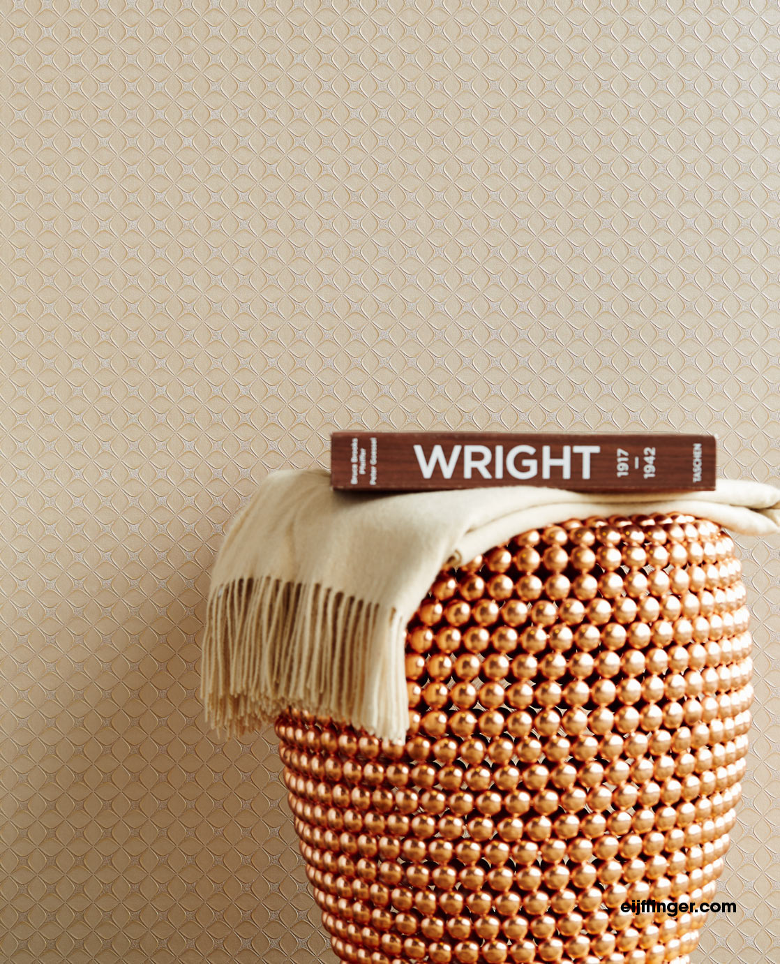 Die elegante Reunited Tapete 372549 mit Kreuz Muster von Eijffinger spielt mit reflektierenden Oberflächen und einem edlen Muster.