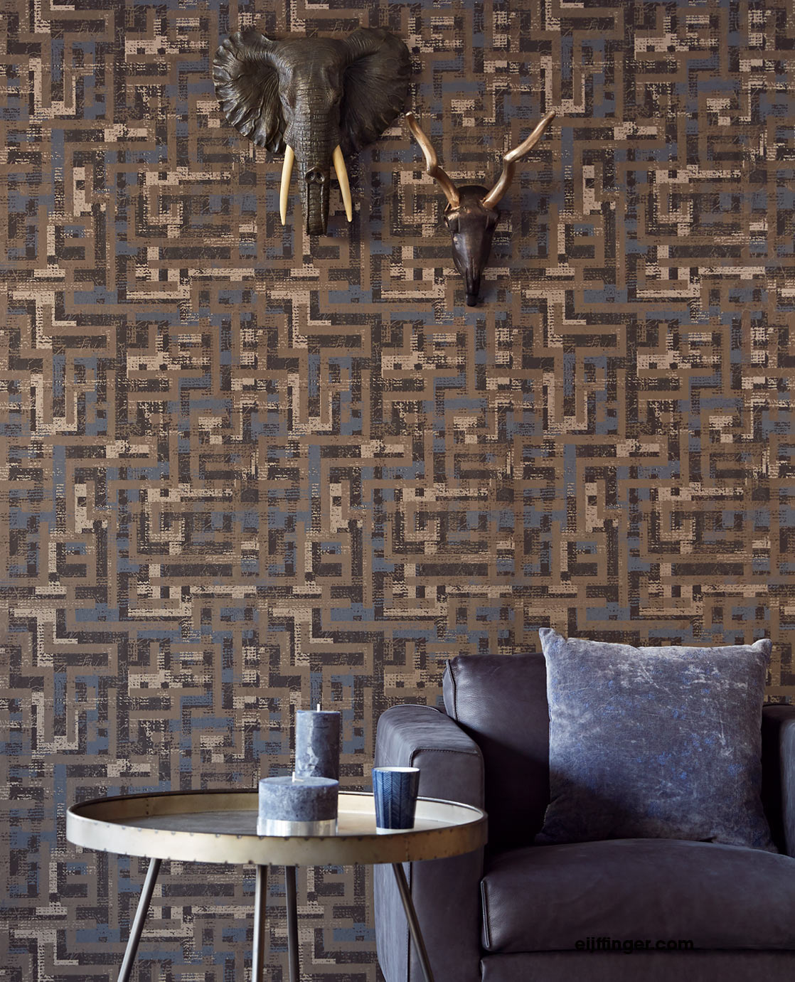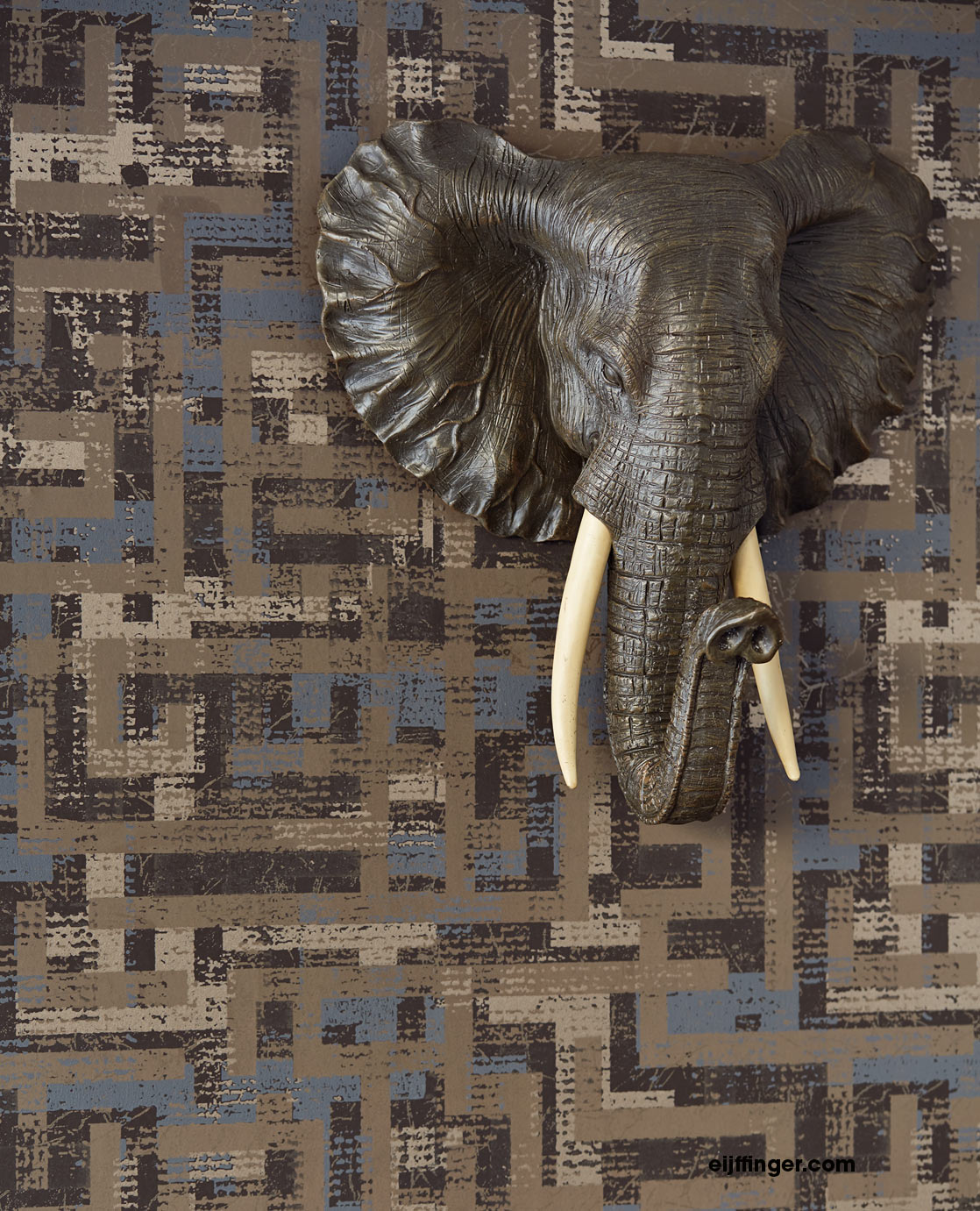 Die exotische Siroc Tapete 376013 mit braunem Rechteck Muster von Eijffinger eignet sich perfekt zum Kombinieren mit anderen Tapeten der Kollektion.