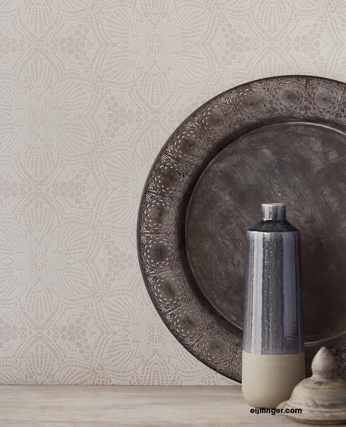 Die exotische Siroc Tapete 376058 mit grauem indischem Blumenmuster von Eijffinger gibt Ihrem Zuhause exotischen Charme.