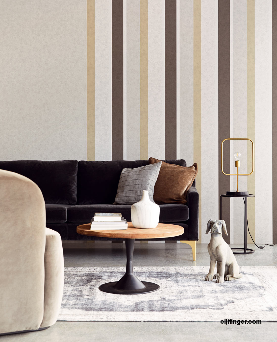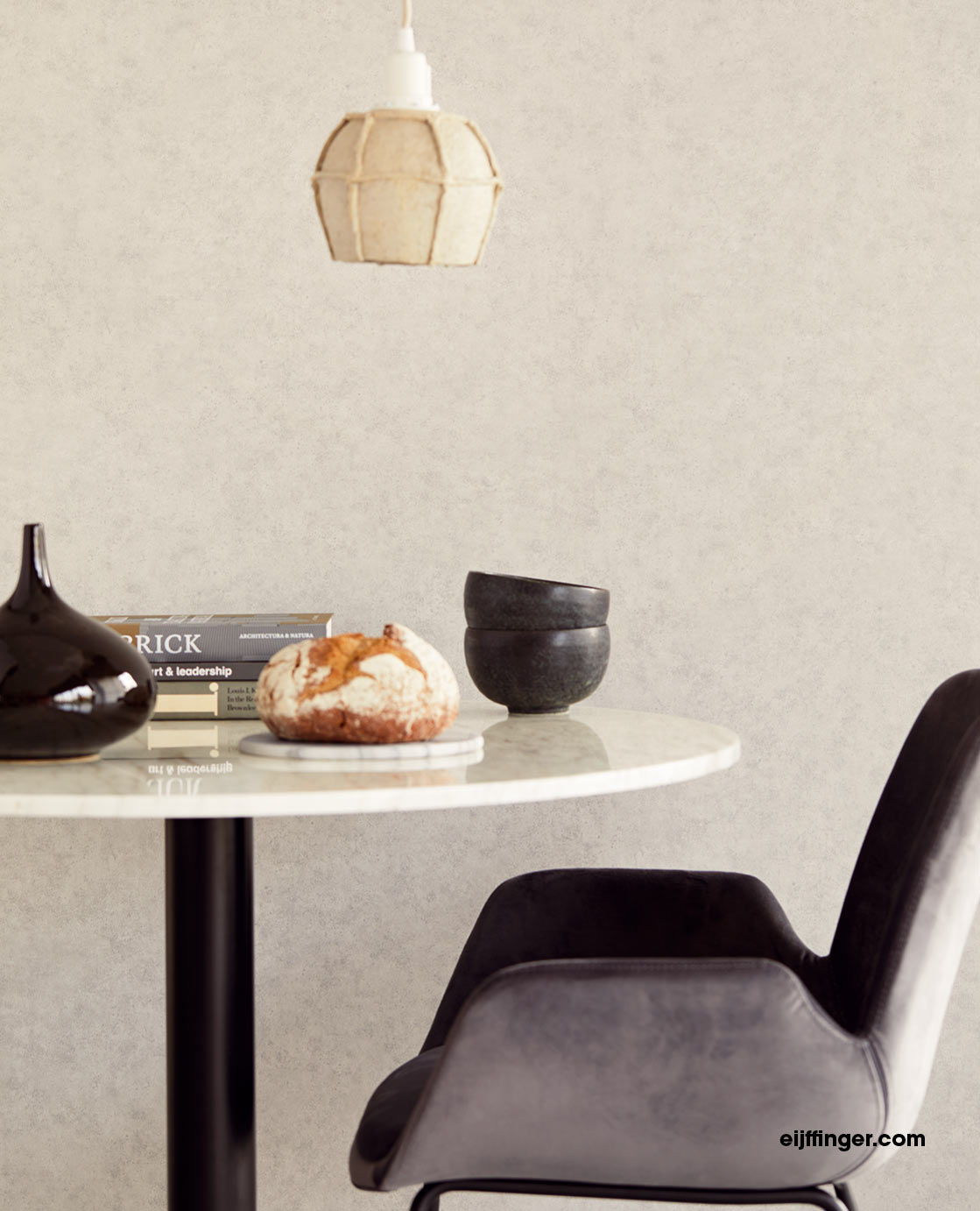 Die schlichte Stature Tapete 382562 mit eisgrauer Stein Optik von Eijffinger bildet die perfekte Basis um sie mit anderen klassischen Tapeten zu kombinieren.